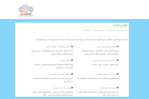 با توجه به اینکه موضوع هر دپارتمان متفاوت است و تیکت های ارسال شده به هرقسمت را کارمند متخصص آن موضوع چک و پیگیری میکند ، در این مرحله لازم است شما تشخیص دهید برای چه کاری و یا کدام قسمت از وبسایت خود نیاز به پشتیبانی دارید . بطور مثال :